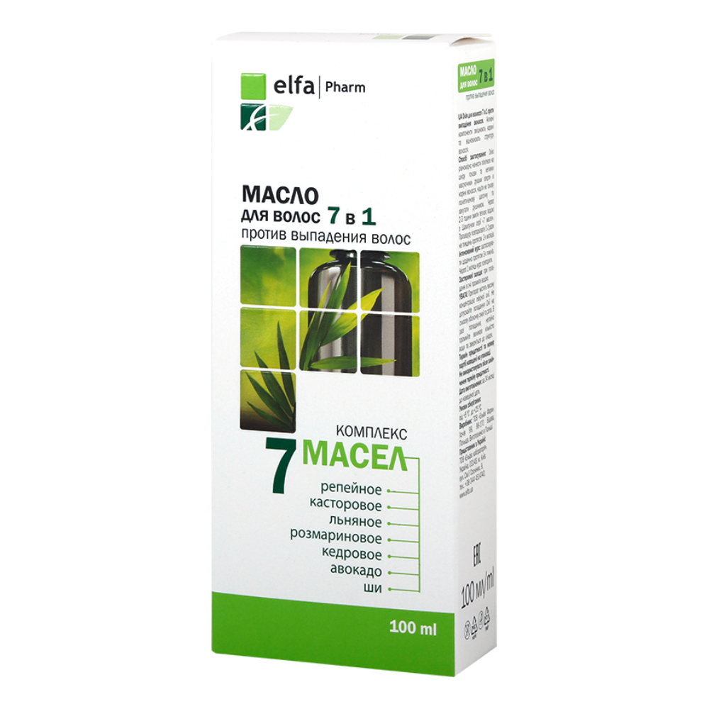 Nuo plaukų slinkimo. 7 aliejų kompleksas: varnalėšų, ricinos, linų, rozmarinų, kedrų, avokadų, taukmedžio. – Skatina kraujo apytaką ir maitina plaukų folikulus. Aliejus tinka pažeistiems ir silpniems plaukams. 7 aliejų kompleksas stiprina folikulus, apsaugo viršutinį plaukų sluoksnį, palaiko normalų drėgmės lygį, apsaugo nuo lūžinėjimo ir sausėjimo, skatina kraujo cirkuliaciją, aprūpina folikulus deguonies, prisotina maitinančiomis medžiagomis.