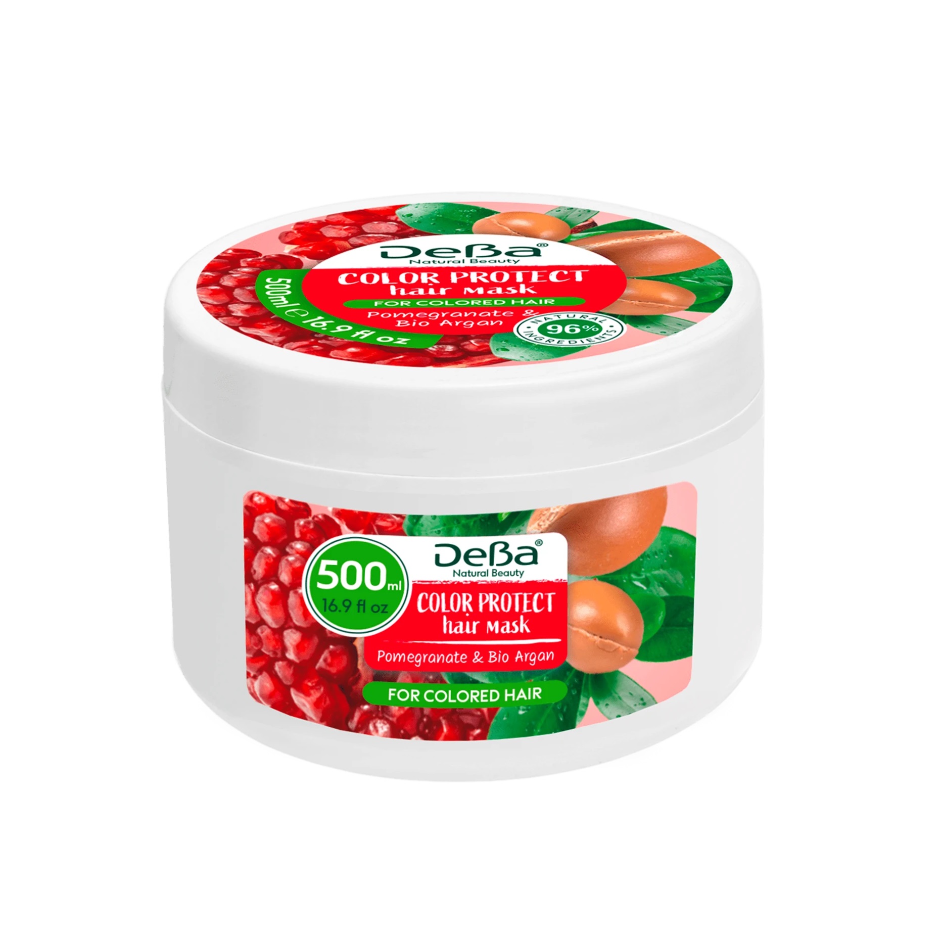 DEBA Natural Beauty Kaukė dažytiems plaukams su granatų ekstraktu ir argano aliejumi, 500 ml