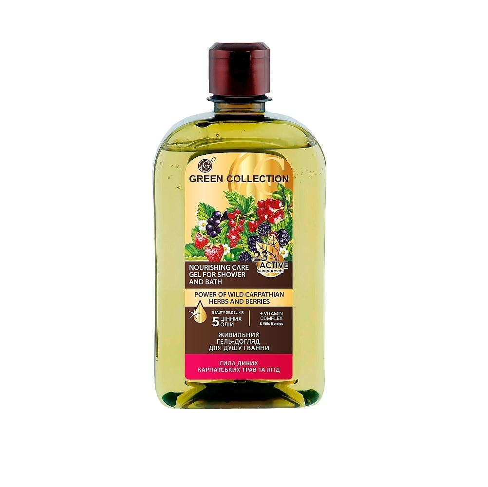 GREEN COLLECTION Maitinantis dušo ir vonios gelis Karpatų laukinių žolelių ir uogų galia, 500 ml