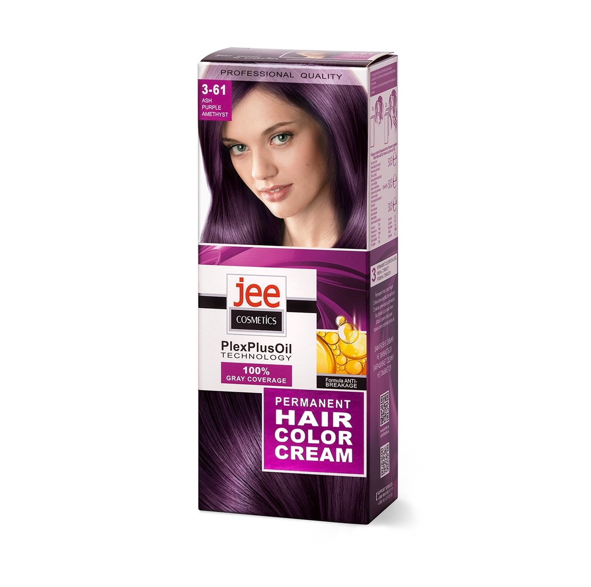 JEE COSMETICS Kreminiai dažai plaukams 3-61 Peleninis violetinis ametistas, 50/50/30 ml