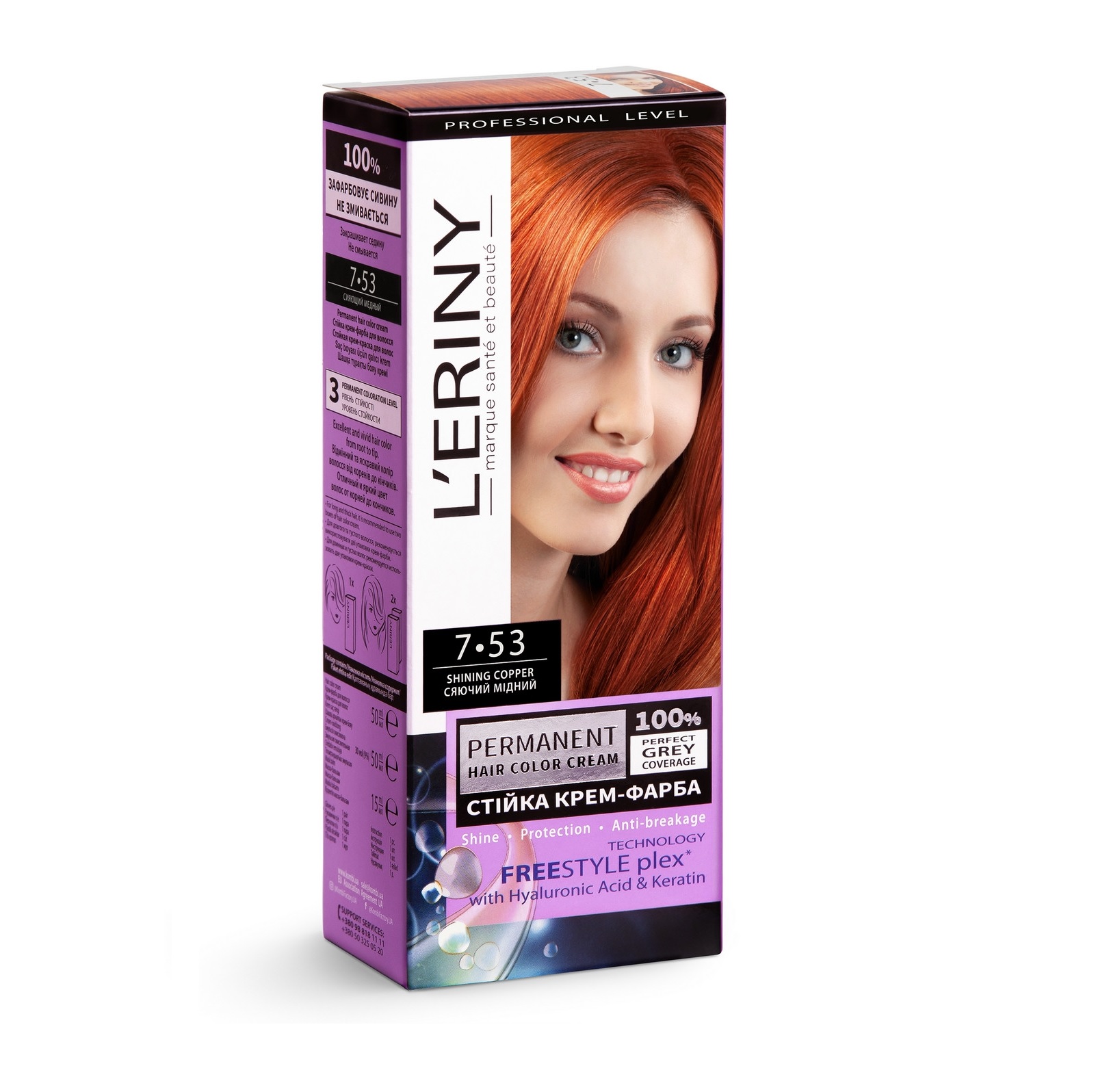 L`ERINY Kreminiai dažai plaukams 7.53 Spindintis varis, 50/50/15 ml