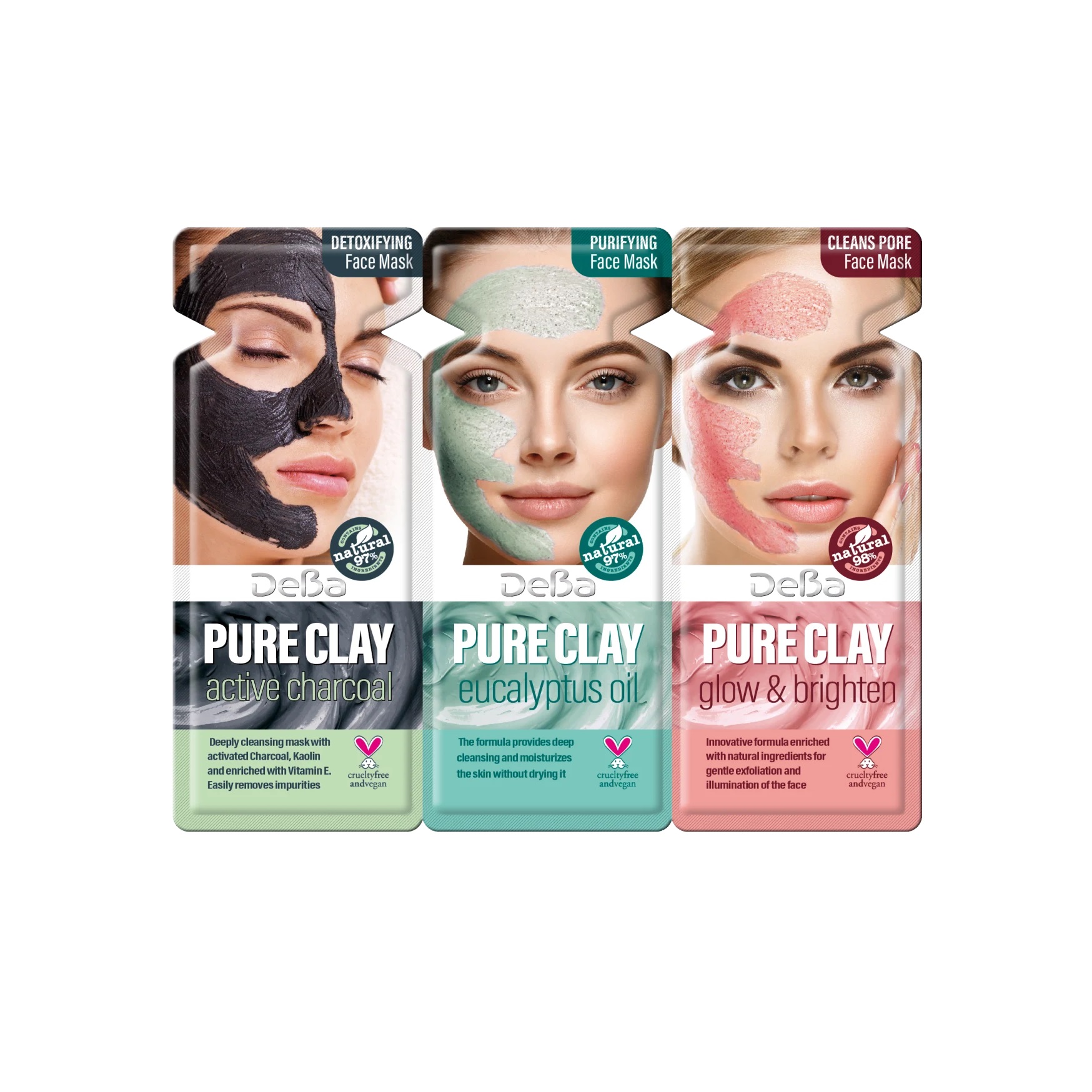1. Dziļi attīroša maska ar aktivēto ogli, kaolīnu un vitamīnu E. Viegli noņem netīrumus. Aktivētā ogle attīra poras, E vitamīns baro un uzlabo ādas elastību. Piemērots visiem ādas tipiem.