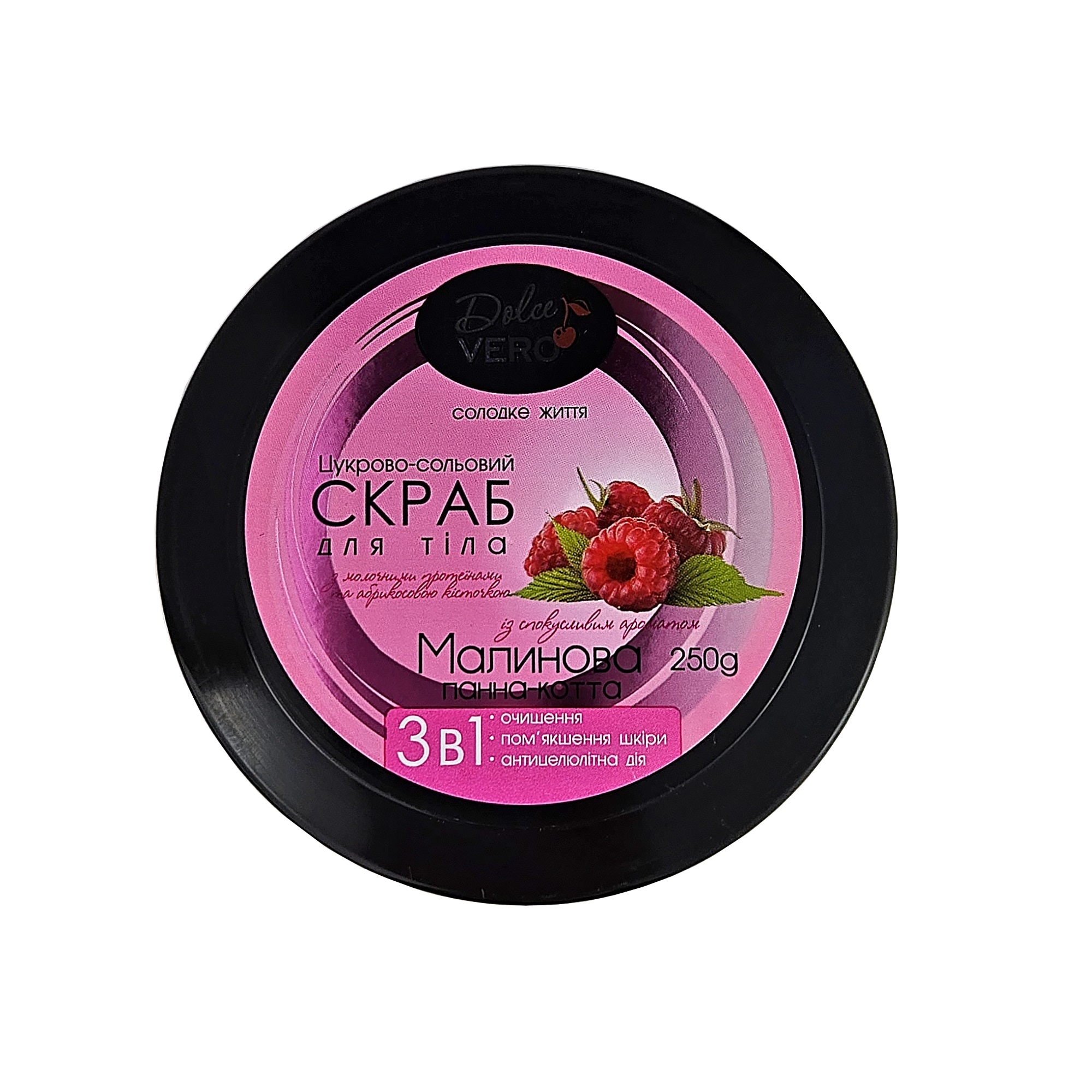 Ar piena proteīniem un aprikožu kauliņiem. Trīs vienā – attīrīšana, ādas mīkstināšana un pretcelulīta iedarbība. Cukura-sāls skrubis ar kārdinošu itāļu desertu Aveņu panna cotta aromātu maigi rūpējas par ādu: attīra, atjauno un mīkstina to. Skrubja masāžas iedarbība stimulē jaunu šūnu augšanu un aktivizē asinsriti, veicinot celulīta pazīmju samazināšanos. Aprikožu kauliņi ir ideāli piemēroti jutīgas ādas maigai, dziļai attīrīšanai. Piena proteīni mitrina ādu, piešķir tai mīkstumu un elastību.