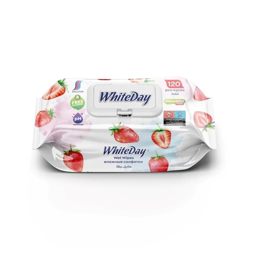 White Day Fruit Garden Hig. mitrās salvetes Zemene, 120 gab.