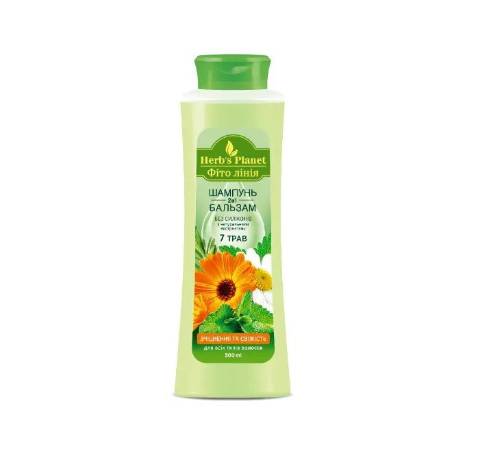 Шампунь-бальзам бережно очищает от загрязнений кожу головы и волосы по всей длине. Содержит экстракты 7 целебных трав.