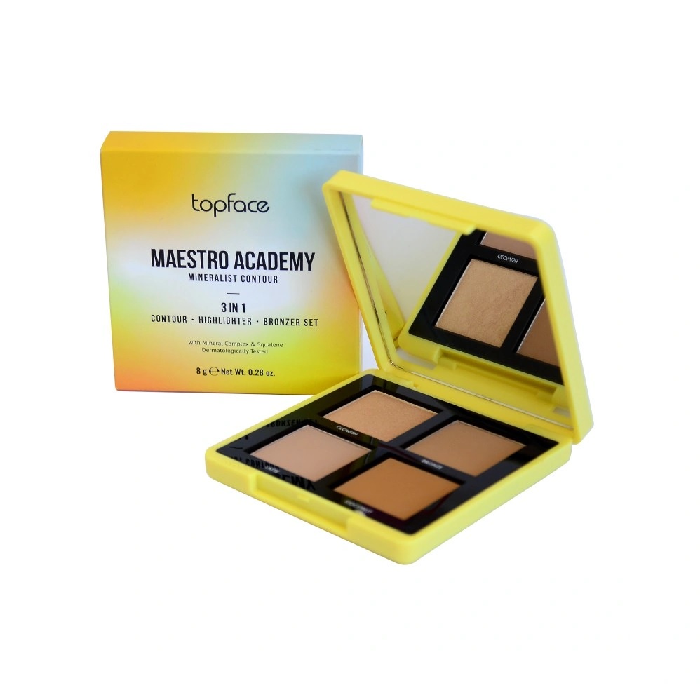 Topface Maestro Academy Mineralist Contour палитра, удобно сочетающая три продукта: контуринг, бронзатор и хайлайтер.